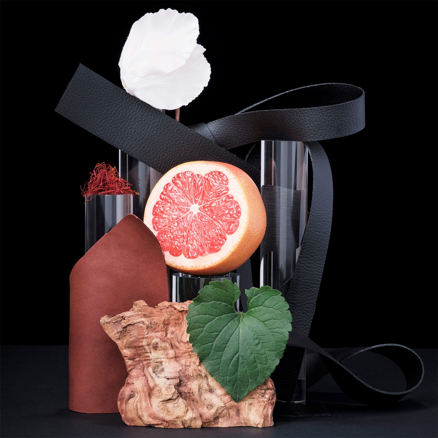 Mandarina, Hojas de violeta, Nuez moscada, Raíces de Angélica, Madera de Cachemira, Notas de cuero